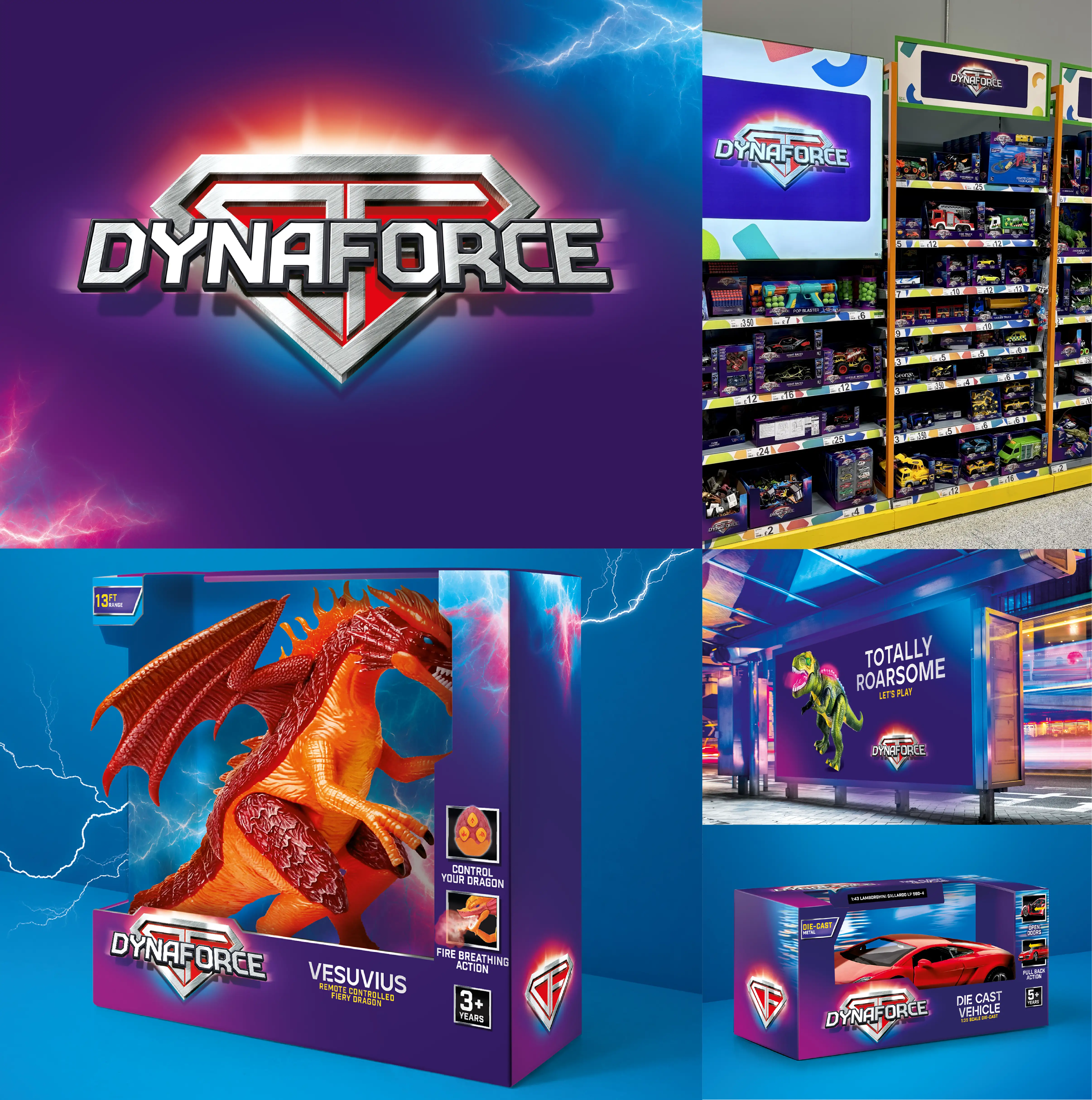 We created the brand name Dynaforce – a confident, high-energy identity built on team spirit, imagination and action. The bold, shield-inspired logo signals strength and collectability, while the inclusive palette and visual world steered clear of dated cues. This was a brand designed to excite kids and reassure parents, remaining playful but never patronising.