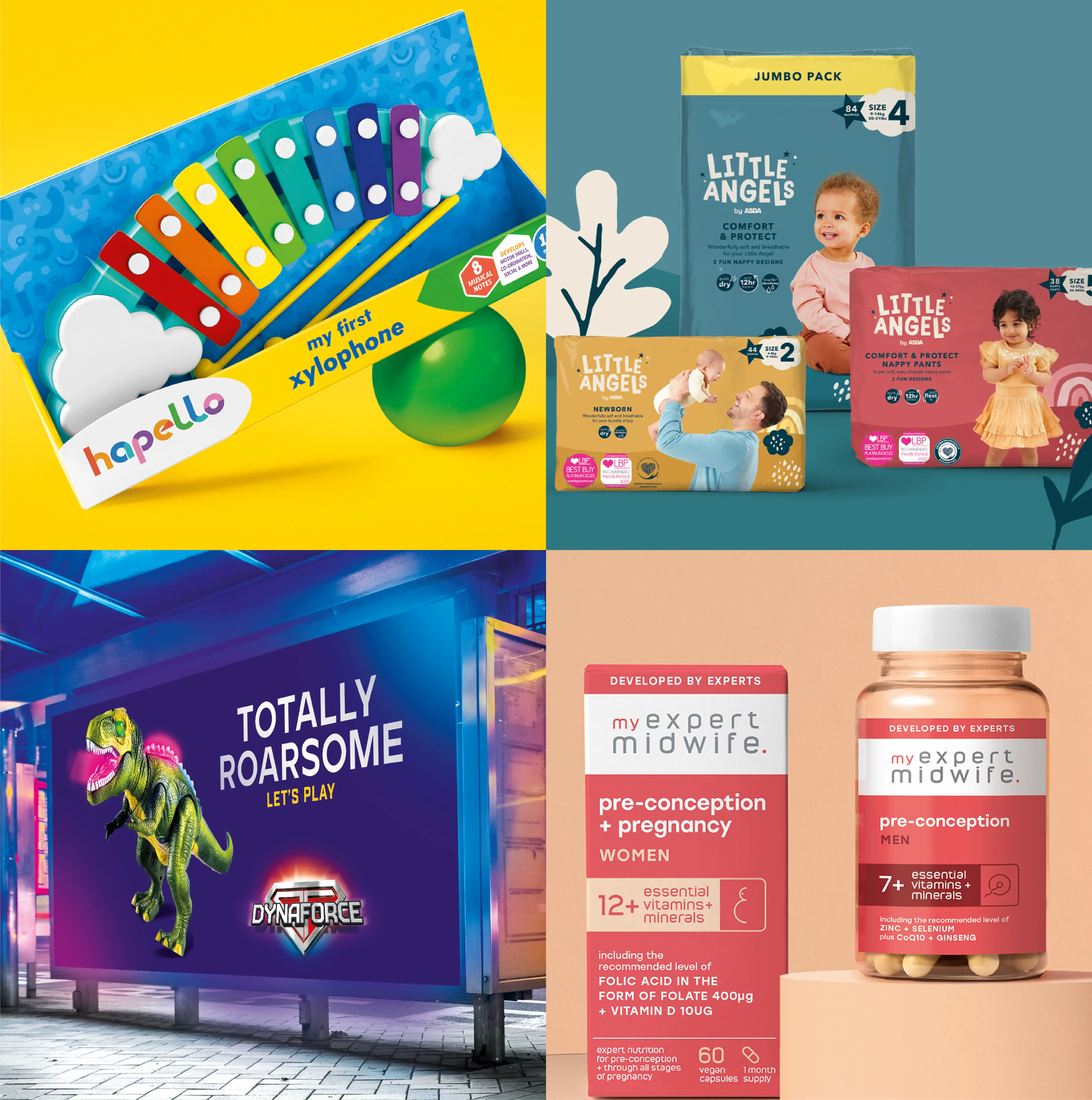 From newborn care to fearless play, we create brands that grow with every stage of family life. We’ve helped supermarket icons like Little Angels evolve for a new generation, shaped own-brand toys like Dynaforce and Hapello from the ground up, and brought cult brands like My Expert Midwife to the high street.