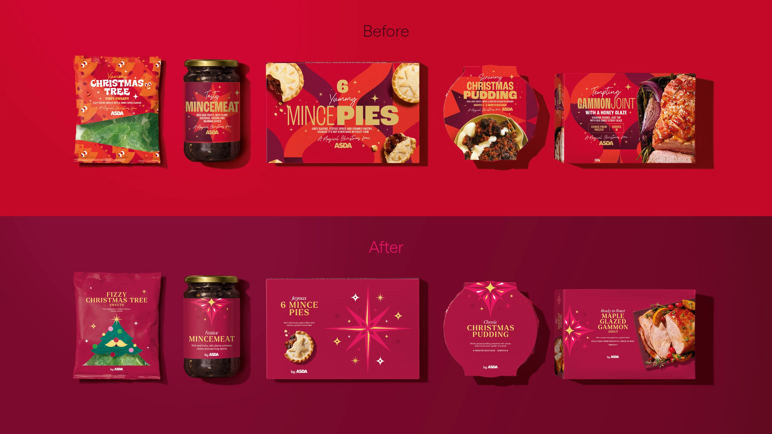 After three successful years on shelves, ASDA’s existing Christmas range design was ready for a refresh. The original packaging had been successful, but behind the scenes, cracks were starting to show. ASDA’s Food and George teams had developed their designs separately, and the result was a visual disconnect across the store. Our challenge was to create a new Christmas identity that complemented the rest of the store, creating a thread that felt more refined and more considered – all without losing the festive magic.
